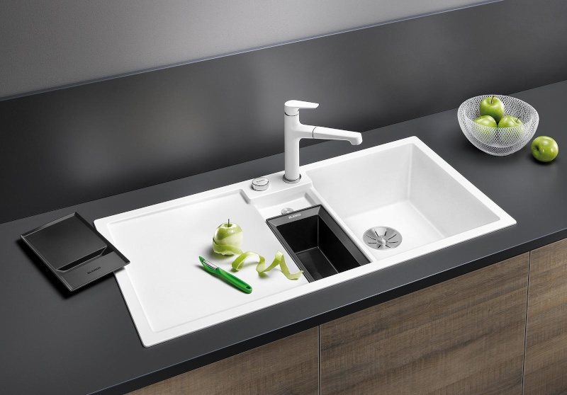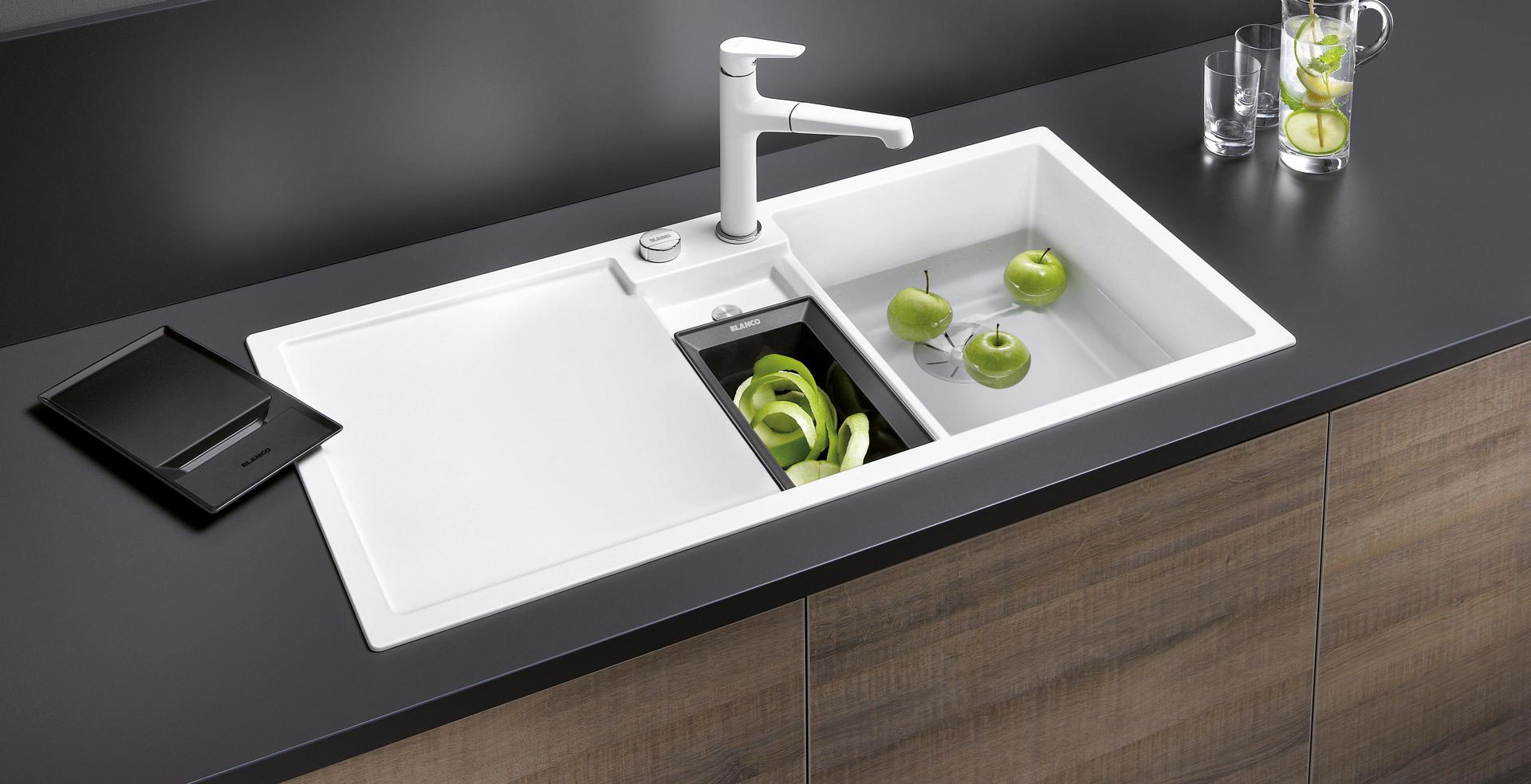 Blanco Collectis 6 S – практичная функциональная мойка с глубокой чашей и системой сбора пищевых отходов. Большая раковина для кухни из материала Silgranit с четкими линиями и удобным разделением отходов - Blanco Collectis предлагает вам новую концепцию для оптимальной организации приготовления пищи. Мойка оснащена дополнительной компактной чашей глубиной 14 см. в центре, в нее идеально помещается входящий в комплект переносной контейнер с крышкой. Это позволяет во время приготовления быстро собирать отходы, накрывать их и временно хранить до тех пор, пока они не будут утилизированы. В сочетании с системой сортировки отходов Blanco Select и Blanco Flexon II эта мойка становится уникальным практичным кухонным помощником. Сортировочный контейнер Collectis идеально совмещается с любой из этих мусорных систем с ведрами объемом 15 или 30 литров. Еще одним преимуществом мойки Blanco Collectis 6 S является дополнительный слив (глубина 26 мм.), который доступен даже тогда когда обе чаши заняты. Эта гранитная мойка продумана до мелочей: основная чаша оборудована современной отводной арматурой InFino и элегантным и гигиеничным переливом C-overflow.